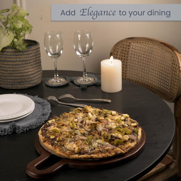 Premium Acacia Round Serveware Board with Handle; Food grade 15 × 12 Walnut stain